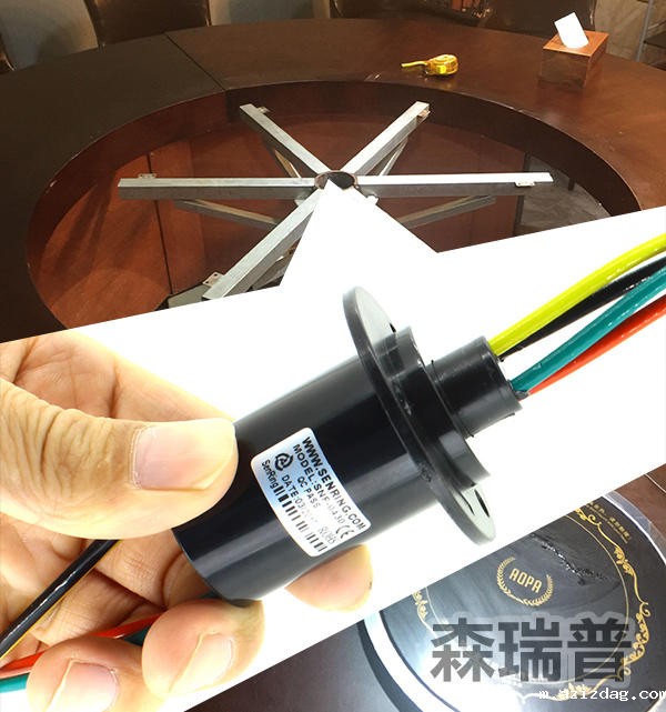 上面这个图片是客户未安装米兰app体育官方入口下载手机版大电流滑环前的照片。他这个餐桌有点大,为了让转盘保持足够的马力,他在桌子下面安装了一个较大马力的电机。餐桌的外圈是不转的,正中央部位有个凹进去的旋转轴,将滑环安装在这个部位即可。由于旋转轴中心孔不是很大,可以选一款滑环外径与孔差不多的,将滑环塞进去卡紧即可。这里他有两种选择:2路30A和4路30A都可以。