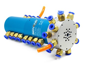 - 16通路电气回转接头,支持16个气通路互不干扰回转传输,可以选气电一体;