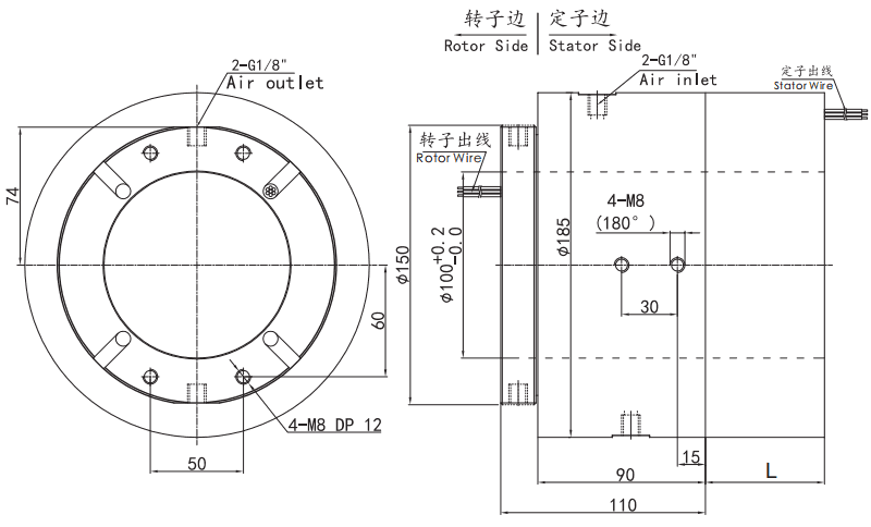 | 型号 | 气管数量 | 接口尺寸 | 可适应气管 | 电流(10A)路数 | 信号(5A)路数 | L长度(mm) |