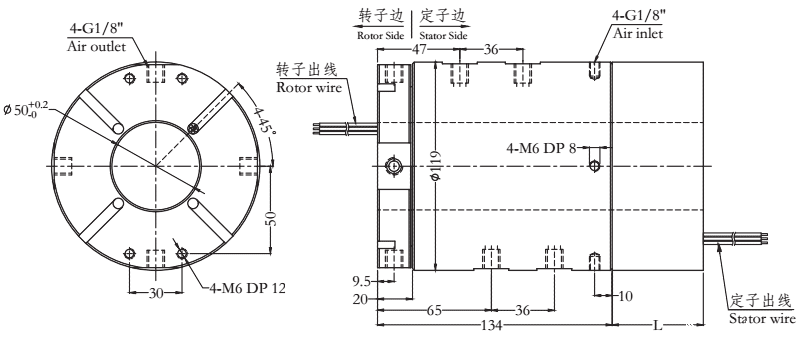 - 可选纯气滑环,也可以混合功率动力线、信号线、以太网、编码器线、控制线、电磁阀、感应线等;